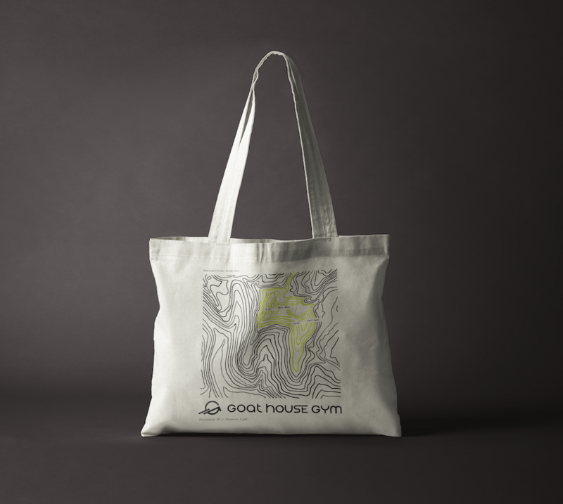 Their passion for the outdoors, and origin of their brand name being tied to the peaks visible in the mountain range towering over this little valley (East Goat and West Goat), inspired our design of the Goat House logo; a tilted G with two mountain peaks running through it.
